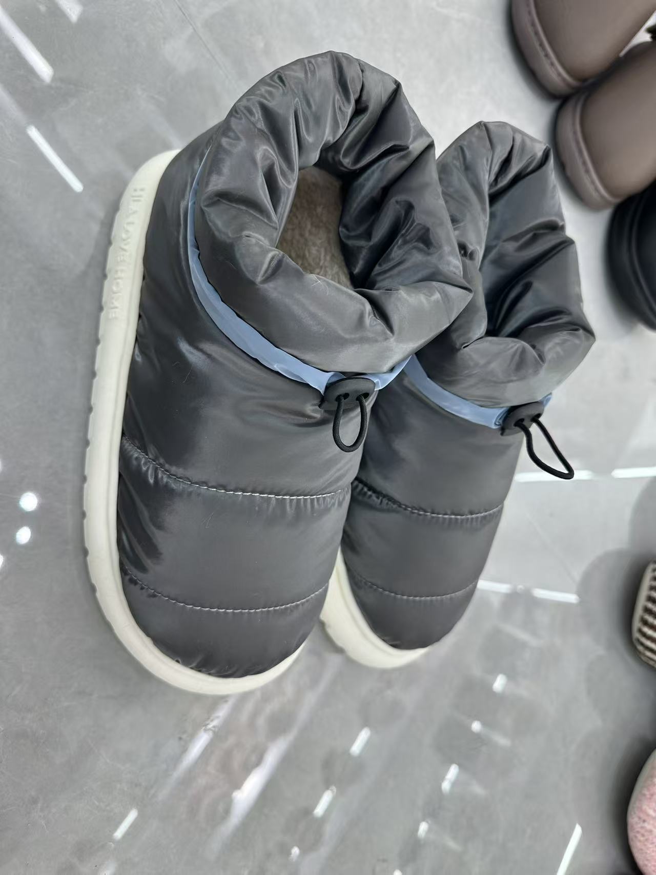 Das herausragendste Merkmal dieser mit Daunen gefüllten, wasserdichten, rutschfesten Baumwollpantoffeln von Lesijia Shoes ist das wasserdichte Obermaterial aus Stoff. Bei häufigem Regen und Schnee im Winter hält das Obermaterial das Wasser effektiv ab, egal ob Sie ein Paket holen oder den Müll rausbringen, selbst wenn Sie versehentlich in eine Pfütze treten. Der Innenraum ist mit hochwertigen Daunen gefüllt, die sehr flauschig sind und eine hervorragende Isolierung bieten, sodass Sie sofort ein Gefühl wohliger Wärme spüren. Wir haben die „Praktikabilität“ auf die Spitze getrieben. An der Öffnung des Schuhs ist speziell ein Kordelzug angebracht; Durch leichtes Ziehen wird die Öffnung enger, sodass keine kalte Luft eindringt und ein fester Sitz gewährleistet wird.