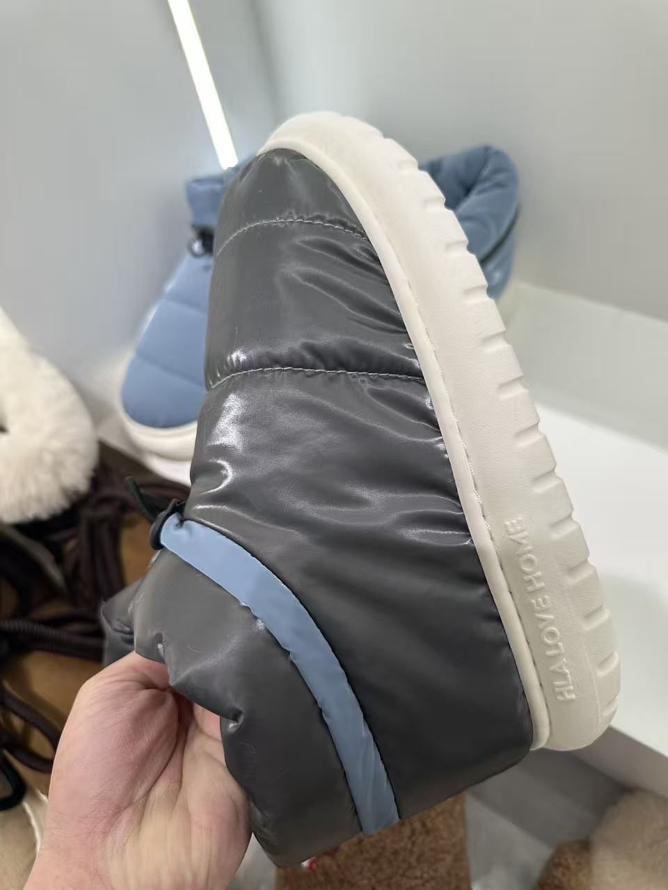 Als wichtiges neues Produkt für die Wintersaison von Lesijia Shoes sind die in China hergestellten, mit Daunen gefüllten, wasserdichten, rutschfesten Baumwollhausschuhe praktisch maßgeschneidert für regnerische und verschneite Tage. Sie können sowohl drinnen als auch draußen getragen werden und lösen damit vollständig das häufige Problem, dass Winterpantoffeln „Angst haben, nass zu werden und nicht warm genug zu werden“.